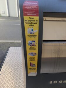 You can find the compost receptacles at many places throughout the city. Receptacles for the other types of waste are found at some spots in the city (Place Imbach, Place Herault) but most residents of Angers put the bagged waste out for collection, and your day for waste collection varies with the neighborhood. Your neighbors, owner, or property manager are your best advisors on what day and what time and where you leave your bags out. If you want to separate the non-class recylclabels they need to be in yellow bags which can be obtained at the city hall.
